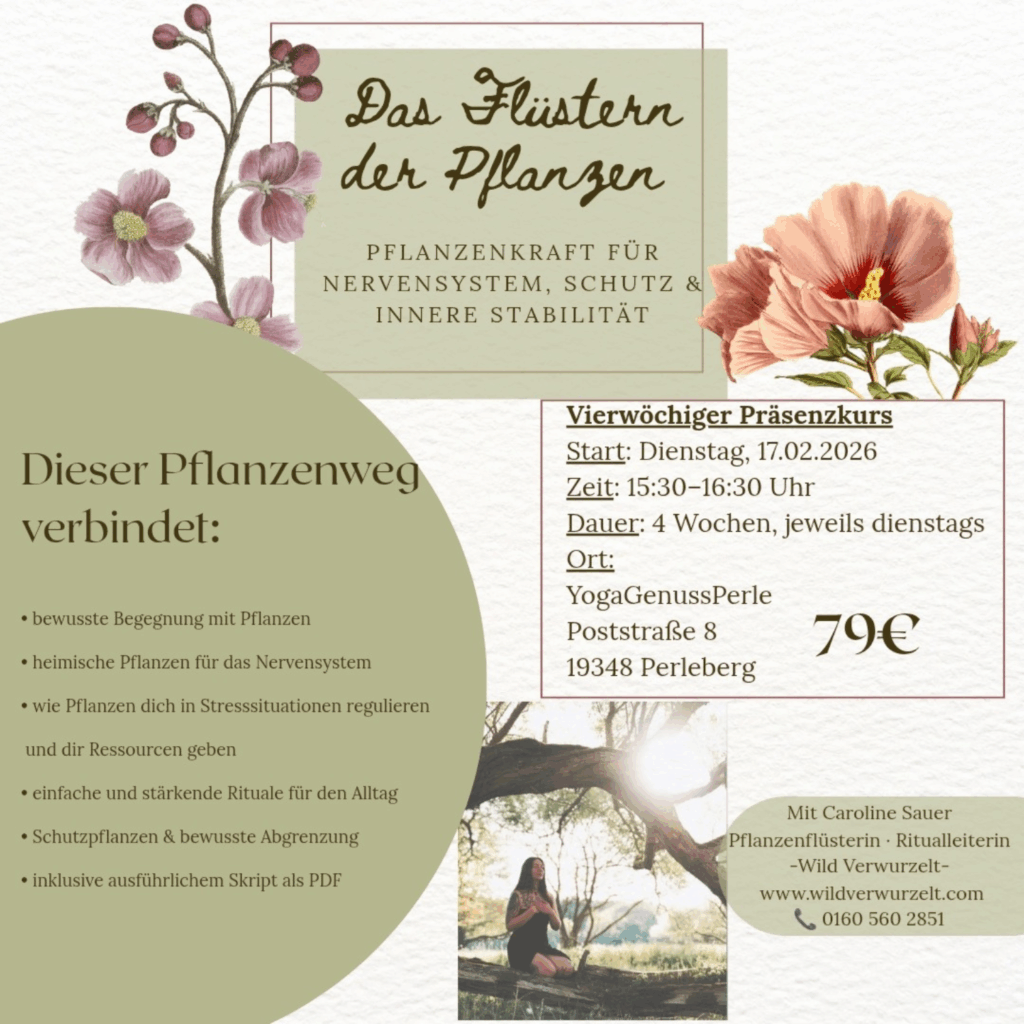 Dabei fließen, je nach Bedarf, Anteilearbeit, Nervensystemregulierung. Pflanzenmedizin